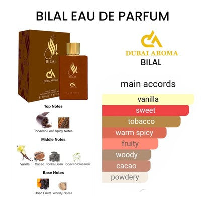 Bilal by Dubai Aroma 100ml Eau de Parfum - Rich Vanilla, Cacao & Spicy Notes